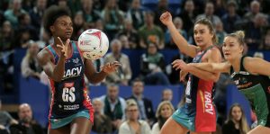 In one standout moment in the second quarter, taking a seemingly impossible feed, she performed a graceful netballing arabesque, somehow balancing on one leg before duly sinking the shot – all without getting called for held ball.