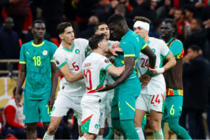 Senegal and Morocco players clash during the Africa Cup of Nations final (AFP/Getty Image)