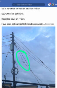 The trend was ignited today when a corporate customer (name withheld) cried foul over inefficiency of faults-clearing services at their premises, disclosing that an ESCOM cable got burnt on Friday, which was reported the same day and was escalating the report by keeping reminding the ESCOM faults department.