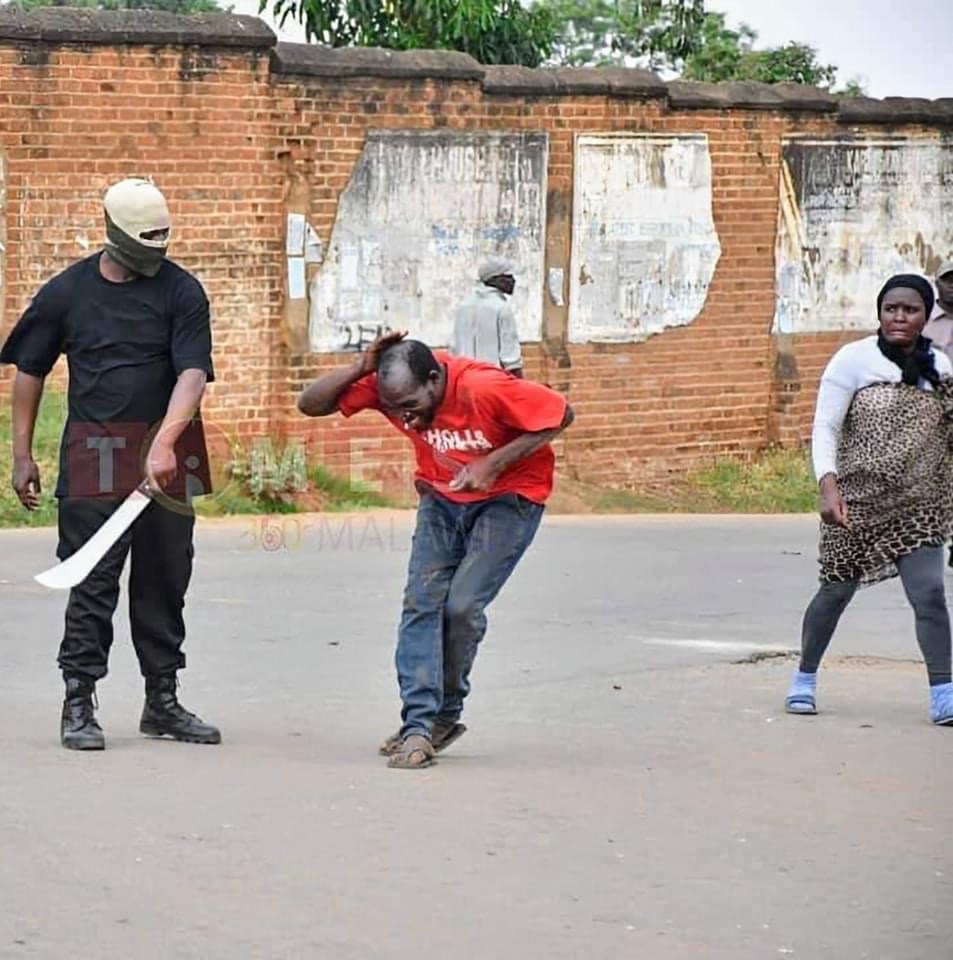 But the armed groups of people, suspected to be the ruling Malawi Congress Party (MCP) supporters, blatantly moved around in hostility with panga knives and catapults around their necks attacking the demonstrators, including any other passerby, right under the watch of patrolling police vehicles.