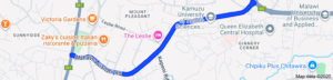 * Along it, the road connects to Queens Hospital; Blantyre Central Business District (CBD) through Mandala Road; to KUHeS