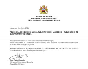 In his statement, Mukhito, who is a former Inspector General of the Malawi Police Service, says “the scale of these recoveries points to an organised and unlawful fuel trade network, which has now been disrupted.