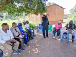 Paramount Chief Kyungu addressing community leaders after the inspection