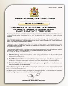 In a public statement issued today, April 20, the Mayor, while thanking FAM for its apology, which it attributed to a “protocol oversight at the operational level,” emphasised that a full and transparent report is required as directed by the Ministry of Youth, Sports & Culture and the Malawi Local Government Association (MALGA) — declaring that he will not accept any sanitised or evasive account.