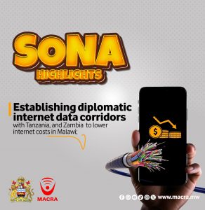 * finalisation of establishing diplomatic data corridors with Tanzania, and Zambia to create dedicated internet data corridors for lowering internet costs in Malawi;