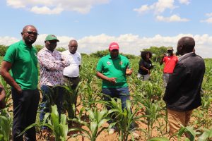 Ministers of Agriculture, Finance and Information inspecting maize fields in Lilongwe