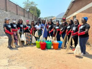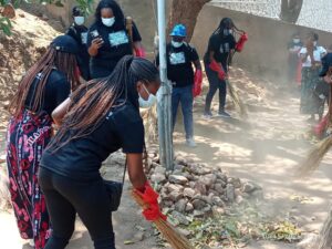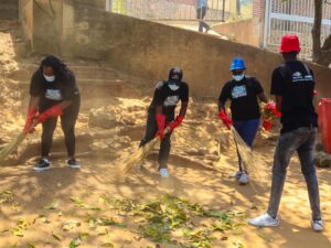 The cleaning items included blooms, industrial gloves, mops, handwash soap, and they also helped sweep the health centre’s exterior landscape as part of the entertainment service provider’s social corporate investment.