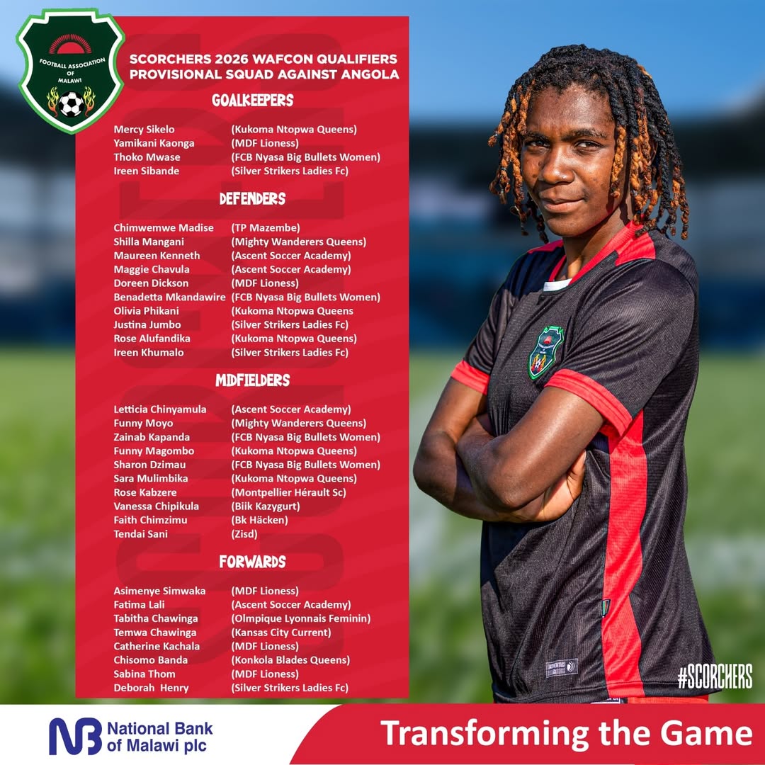 Scorchers is preparing for Angola for the first leg away on Thursday, October 23, before hosting the return fixture on Tuesday, October 28, at the Bingu National Stadium in Lilongwe — whose winners will qualify for the WAfCON 2026.