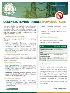 The management acknowledged the significant impact current power outages are having on households, businesses and the national economy , saying: “We recognise that the current situation is critical and we are addressing these challenges with the urgency that they deserve.”