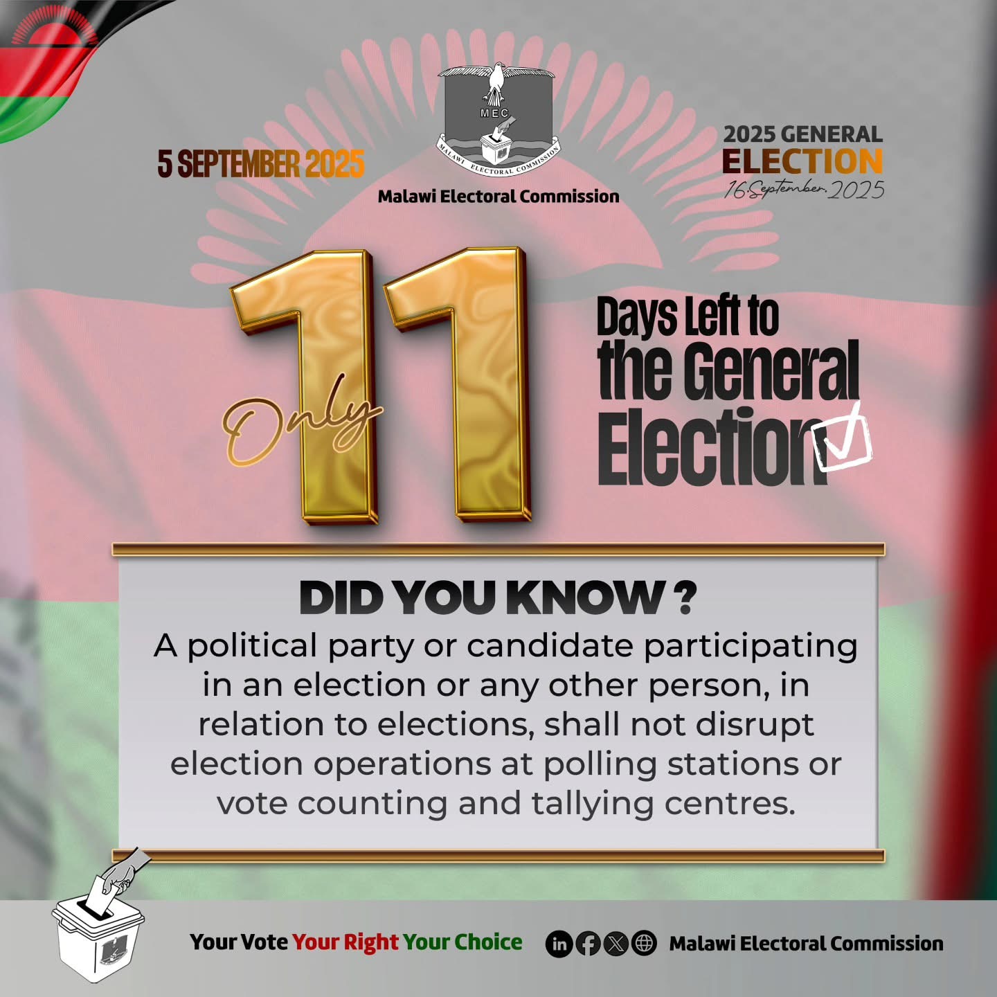 Meanwhile, the Malawi Police Service (MPS) is conducting anti-violence campaign in various parts of the country urging candidates, youths and community members to embrace peace and tolerance during this period.