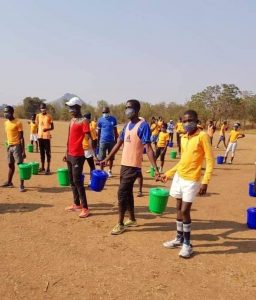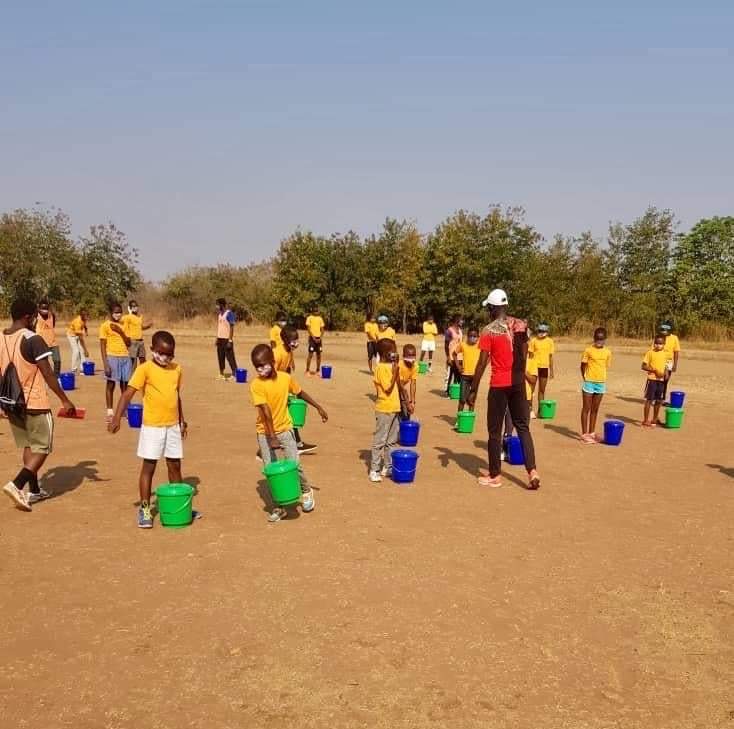 Each hamper of 13ltr pail had 5kgs of maize flour, two packets of Soya pieces, 1kg sugar, 500g of salt, 1kg beans, two bars of soap and to face masks and the first distribution was done by her sister to 5 orphans at her church and 35 Zomba kids received theirs on Sunday at Zomba Development Center.