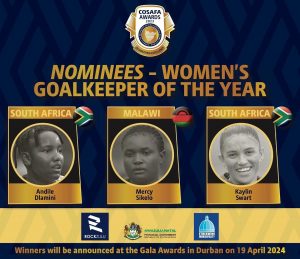 Also unveiled by COSAFA as nominees for Goalkeeper of Year include Malawi Scorchers shot stopper, Mercy Sikelo alongside South Africans, Andile Dlamini and Kaylin Swart.