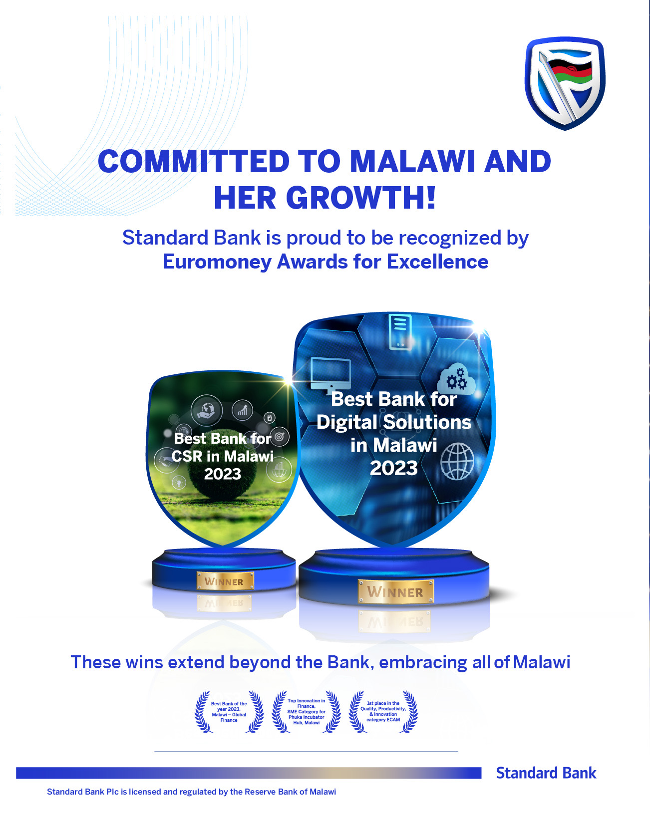 The world’s leading capital markets and financial think tank, Euromoney, has named Standard Bank Plc as Best Bank for corporate social responsibility (CSR) in Malawi and Best Bank for Digital Solutions in Malawi.