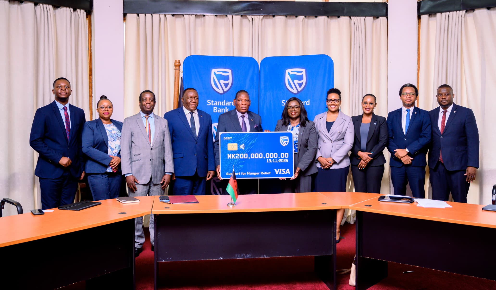 The funds were received by Finance Minister Joseph Mwanamvekha, who applauded Standard Bank for responding to the President’s appeal for assistance, saying the gesture underlined the bank’s commitment to partnership with government.