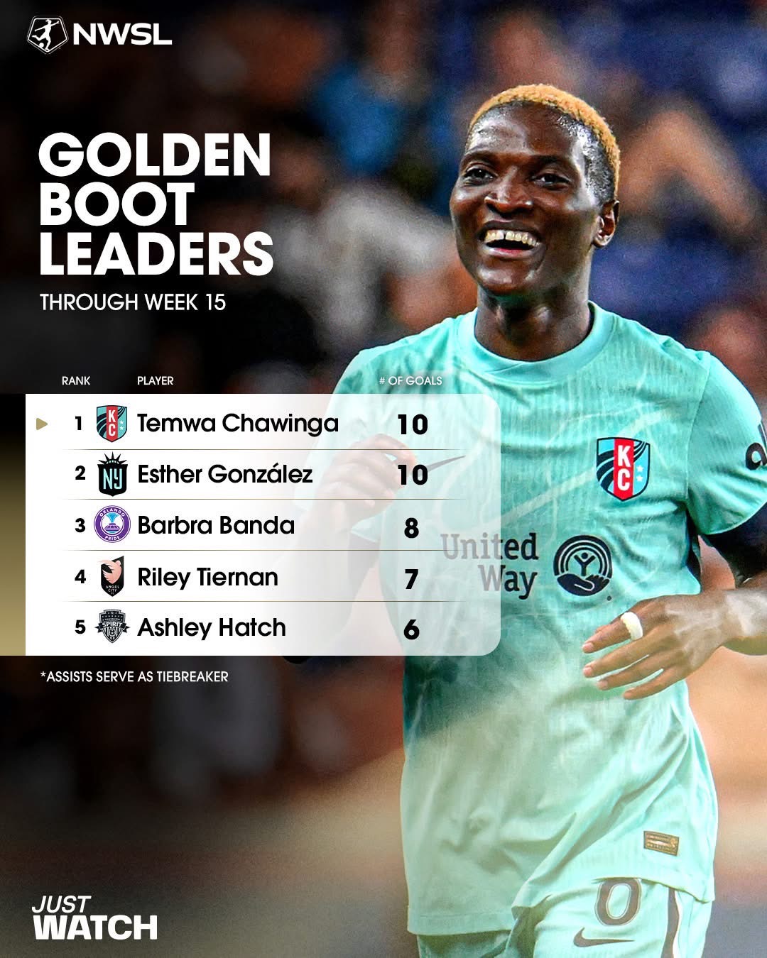 “Thanks to her two assists, the 2024 NWSL Golden Boot winner now stands alone atop the 2025 Golden Boot race, tied in goals with Gotham’s Esther González but dethroning her for top spot thanks to her two assists.