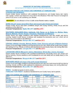 The Department of Climate Change & Meteorological Services (DCCMS) assures the public that at present and in the next 24 hours, Tropical Cyclone Gezani that is located on the Indian Ocean is less likely to affect weather conditions over Malawi.