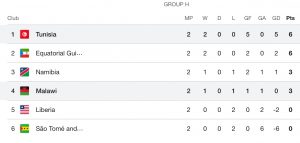 Tunisia first beat São Tomé e Principe 4-0 in Match Day 1 last week, while Equatorial Guinea overcame also edged Namibia 1-0 last Wednesday and Liberia 1-0 on Monday to garner the 6 points.