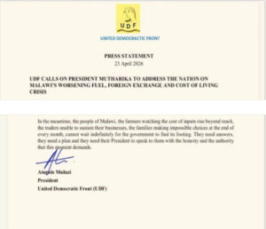 “The UDF acknowledges that global factors, including the disruption to international energy markets arising from the conflict in the Middle East, have placed additional pressure on Malawi’s already strained foreign exchange position.