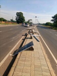 Pictures posted today show vandalised solar-powered street light poles, signposts, destroying and stealing the inter-locking blocks of pedestrians’ sidewalks on the six-lane Mzimba Street.